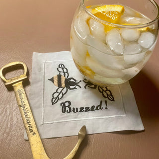 Embroidered Linen Party Cocktail Napkins (Set of 8, Assorted, Black)