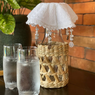 *Classic Bamboo Tray with Embroidered Doily (3 Sizes: Small, Medium, Large)