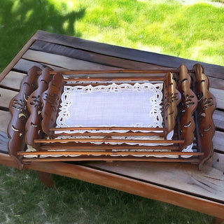 Classic Bamboo Tray with Embroidered Doily (3 Sizes: Small, Medium, Large, personalized)