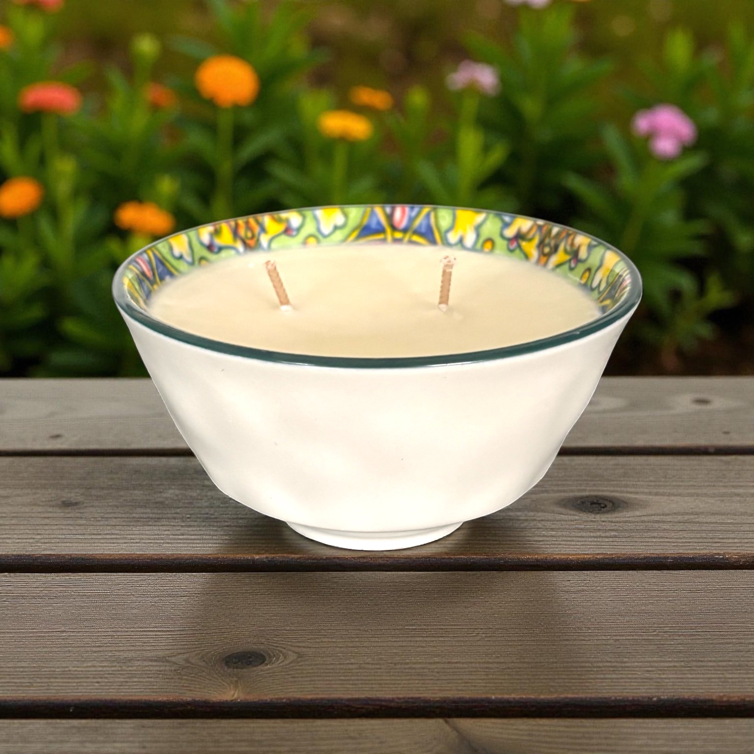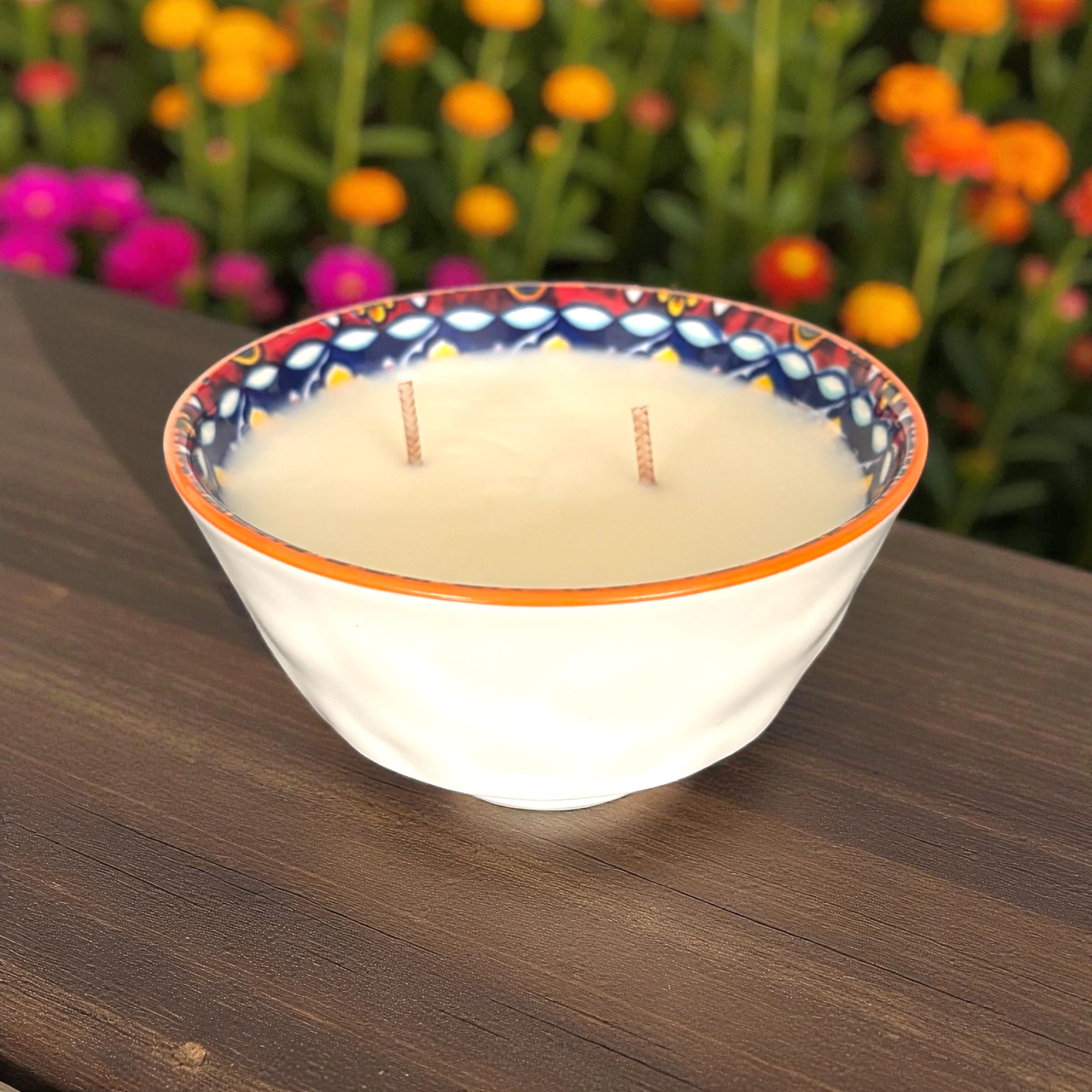 Narra, our best-selling fragrance, fills the room with its enchanting scent, creating a warm and inviting atmosphere. This candle features two wicks, ensuring an even and consistent burn for a mesmerizing display. Consider placing these bowls on stands to elevate the visual appeal of your space. The neutral color of the bowl effortlessly blends with any color scheme, making it a versatile choice for any setting.